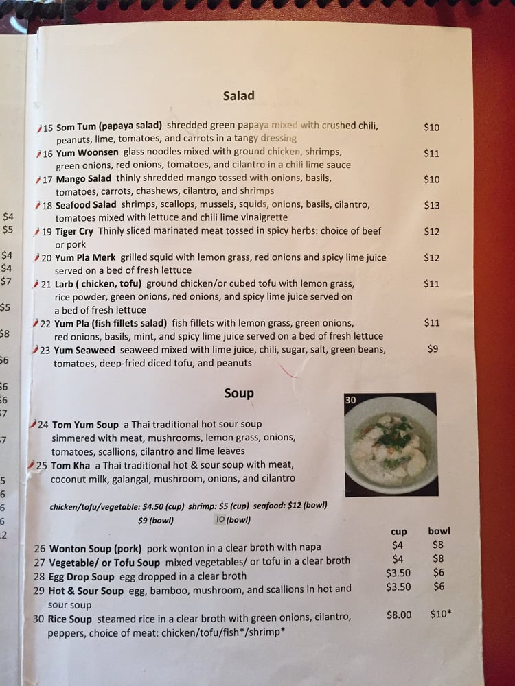 Start your meal with refreshing Fresh Vietnamese spring rolls or crispy Fried Tofu, accompanied by a signature dipping sauce. For a heartwarming experience, savor their Tom Kha Gai soup—infused with coconut milk and lemongrass—or the delightful Mango Salad bursting with fresh ingredients.